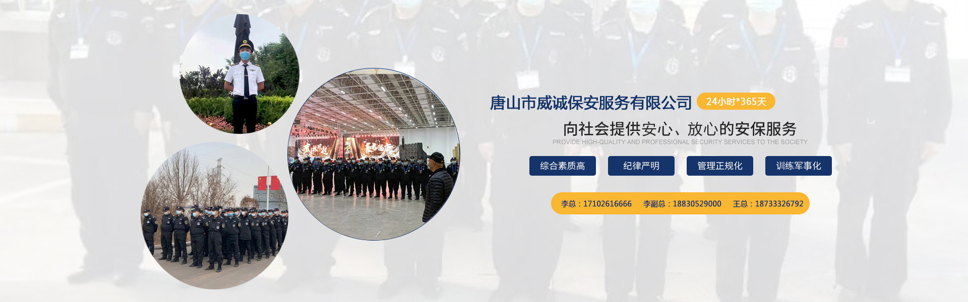 以專創(chuàng)業(yè),以信致遠(yuǎn)。威誠保安服務(wù)有限公司將珍視各利益相關(guān)方的信賴,以堅實的工作績效協(xié)助客戶實現(xiàn)安心、有效、和諧的運營,以嚴(yán)格的管理為員工職業(yè)發(fā)展提供平臺支持,成為法治和諧社會的正能量,成就威誠品牌。